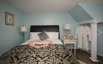 In the Carpenter Manor Luxury Suite, you’ll find a classic mahogany queen-sized sleigh bed steps away from a beautiful heart-shaped Whirlpool for two.