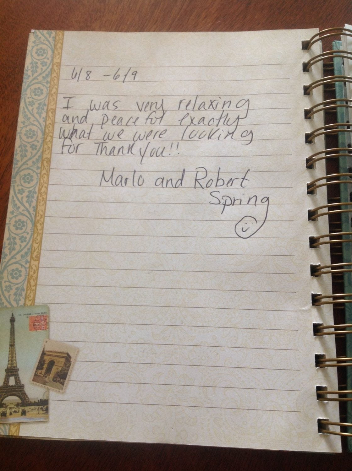 Browse below for a sampling of recent guestbook entries. Then, book your own HideAway getaway to experience our country inn for yourself. See you soon!
